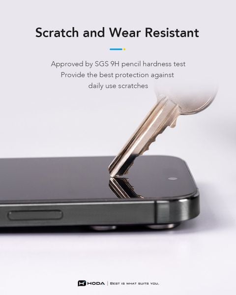 Kính cường lực HODA trong suốt dành cho iPhone sử dụng chất liệu kính cường lực được kiểm tra nghiêm ngặt về độ bền đem đến độ cứng 9H giúp hạn chế các vết trầy xước thông thường.
